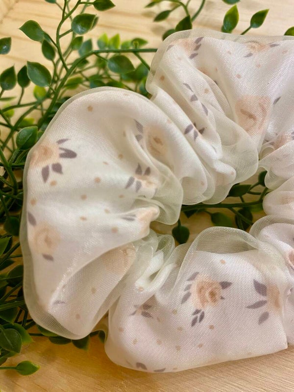 Chouchou en tulle et satin de taille moyenne. Maintien parfaitement les cheveux.