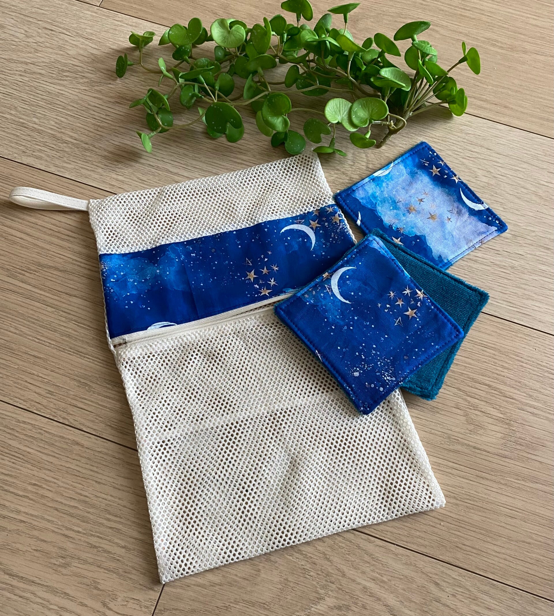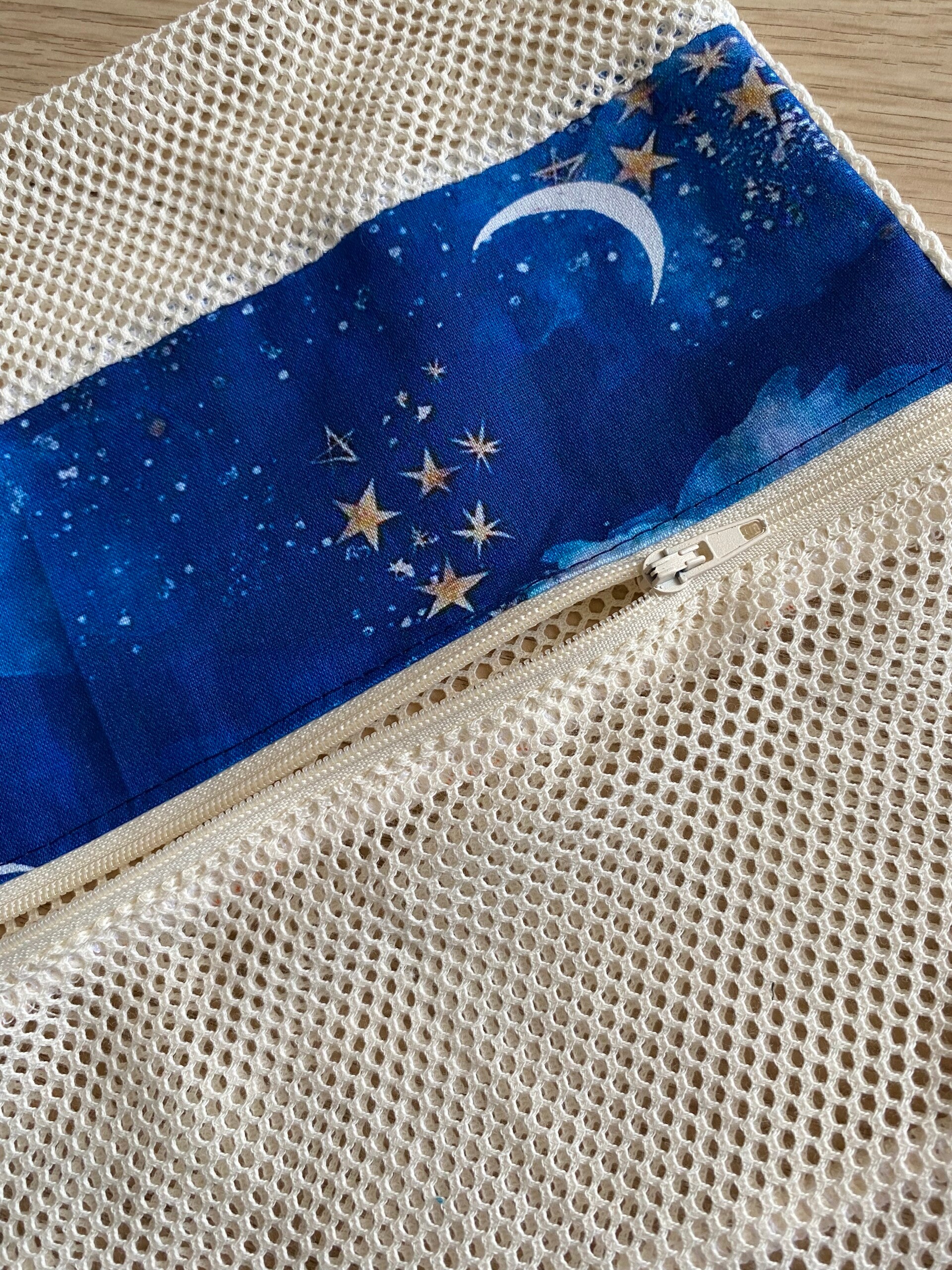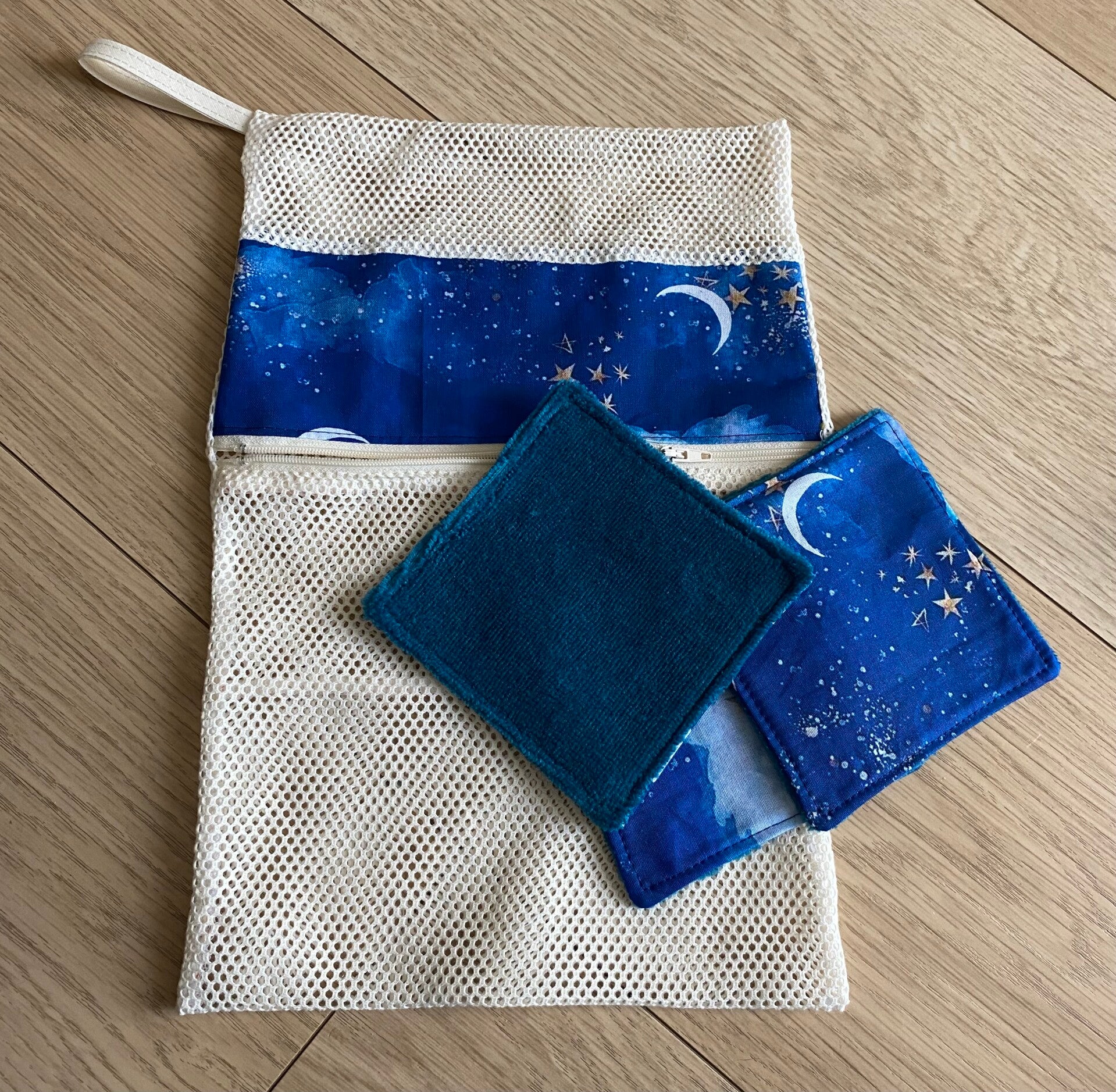Filet en maille avec zip, permet de stocker les lingettes sales directement dedans et les mettre tel quel en machine.